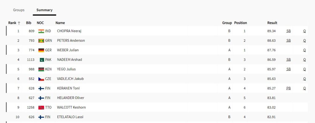 World champion India’s Neeraj Chopra also made his way to the final with a massive 89.34 meter throw, which was also his season best.